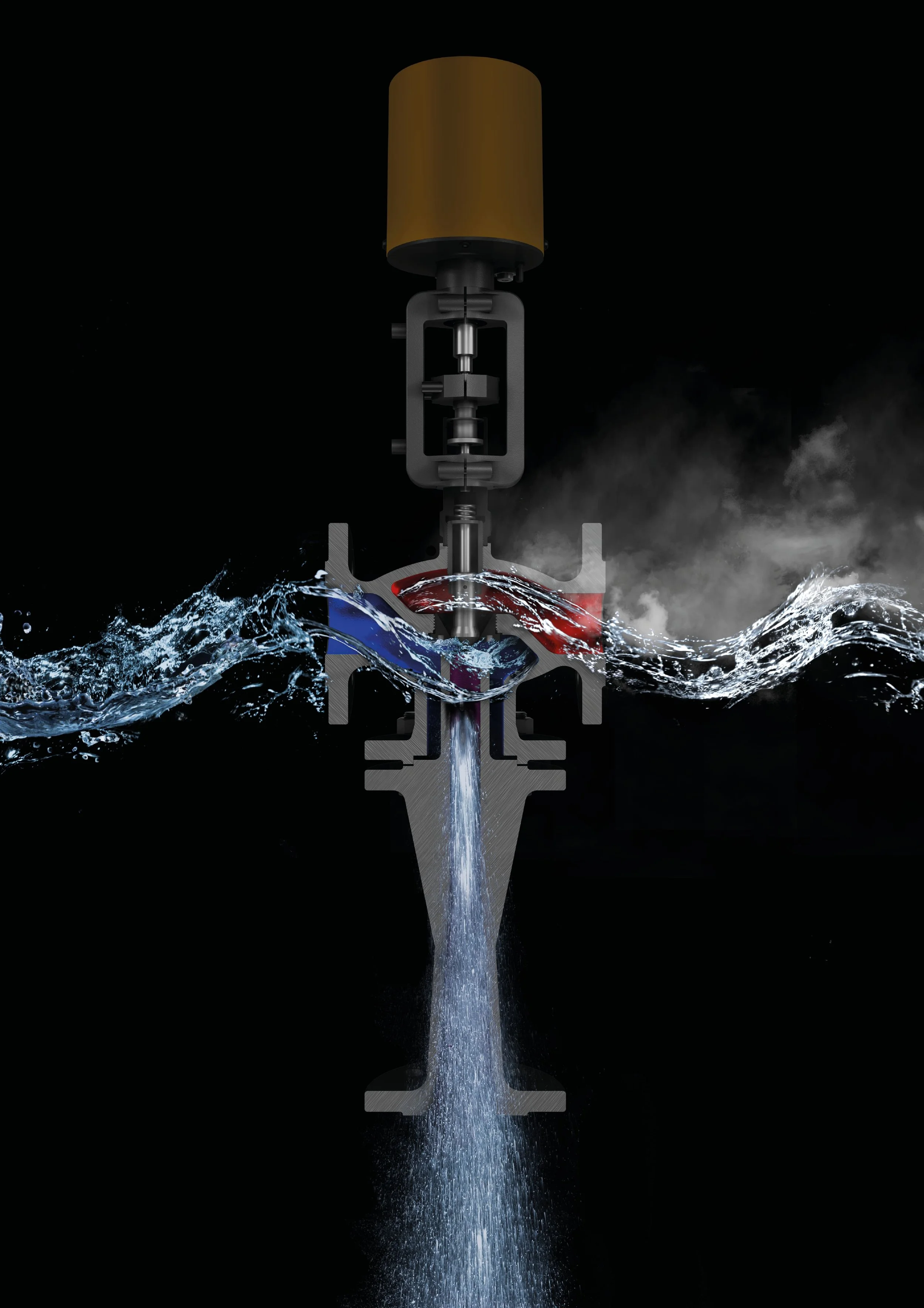 An Actuator dynamically adjusts nozzle size in turn steam flow, ensuring accurate temperature control and eliminating operational issues like steam hammer and Instantly Heating Water from Cold to desired Temperature.